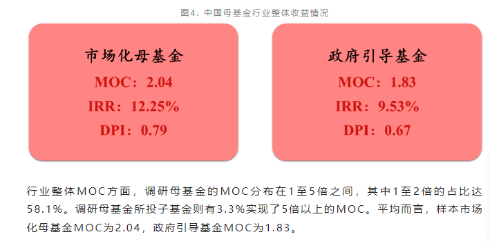 為深入了解當(dāng)前母基金行業(yè)的收益情況,母基金研究中心對(duì)103家具有代表性(考慮規(guī)模、地域、投資階段、投資方向、存續(xù)時(shí)間等)的母基金截至2022年12月31日的收益情況進(jìn)行了調(diào)研和分析。其中,政府引導(dǎo)基金共計(jì)76家,市場(chǎng)化母基金共計(jì)27家(調(diào)研對(duì)象中不含在華外資母基金及只做S基金并無(wú)正常母基金業(yè)務(wù)的機(jī)構(gòu))。對(duì)于所獲得的數(shù)據(jù),我們通過(guò)采取向下穿透的方式進(jìn)行了多重驗(yàn)證,分析其子基金與被投項(xiàng)目的退出與收益情況,力求數(shù)據(jù)的真實(shí)與準(zhǔn)確。
