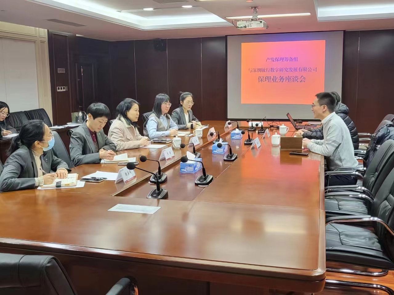 產(chǎn)發(fā)保理籌備組與深圳敏行數(shù)字研究發(fā)展有限公司負(fù)責(zé)人樊樂(lè)飛、鄧文杰交流討論